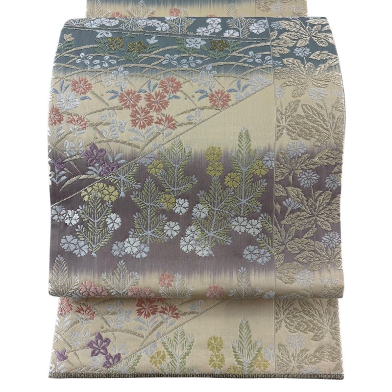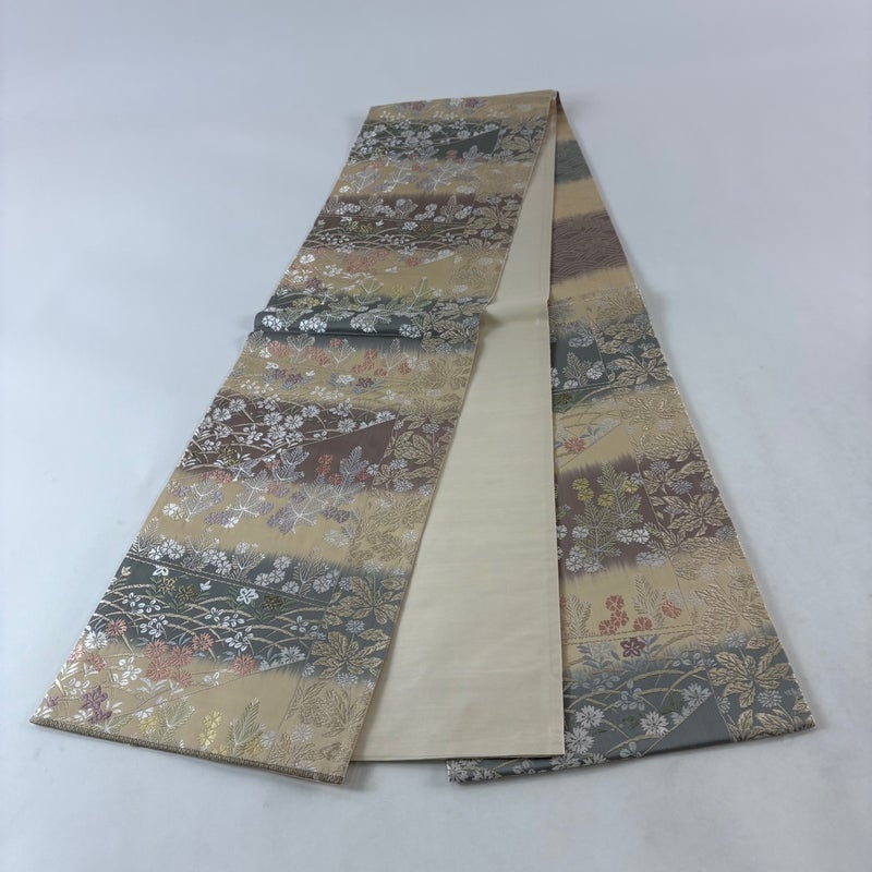 【袋帯】 白系 ベージュ 秀品 A 帯丈436cm以上 7990-9980 美品 二万以下
