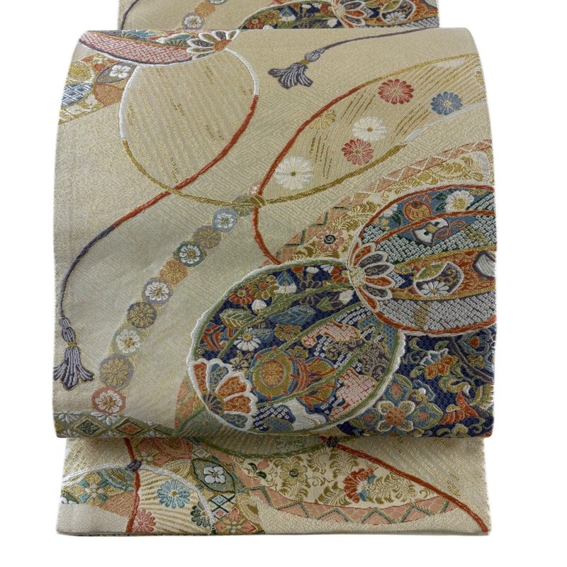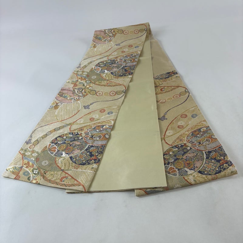 【袋帯】 白系 ベージュ 秀品 A 帯丈426cm~435cm 7990-9980 美品 二万以下