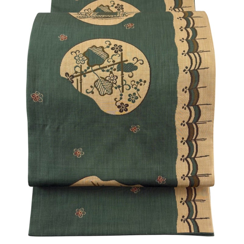 【袋帯】 緑系 緑 秀品 A 帯丈426cm~435cm 7990-9980 美品 二万以下