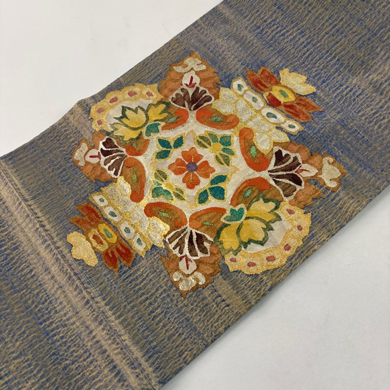 セミフォーマルでお使いいただける袋帯でございます。 見る人に重たい印象を感じさせない女性ならではの、気品豊かな一品です。 締め跡がございます。 リユース品としては目立った染み傷なく、状態の良いお品でございます。 ※なお、厳しく商品の状態確認を行っておりますが、記載の汚れ以外にも見落とし箇所がある可能性がある旨ご了承いただけますと幸いです。 沢山の商品の中からご覧いただき誠にありがとうございます。