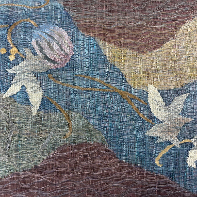 セミフォーマルでお使いいただける袋帯でございます。 見る人に重たい印象を感じさせない女性ならではの、気品豊かな一品です。 締め跡がございます。 お太鼓柄部分と前柄柄部分に糸つれがございます。 リユース品としては目立った染み傷なく、状態の良いお品でございます。 ※なお、厳しく商品の状態確認を行っておりますが、記載の汚れ以外にも見落とし箇所がある可能性がある旨ご了承いただけますと幸いです。 沢山の商品の中からご覧いただき誠にありがとうございます。
