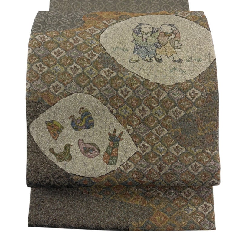 【袋帯】 茶系 茶緑色 秀品 A 帯丈426cm~435cm 7990-9980 美品 二万以下