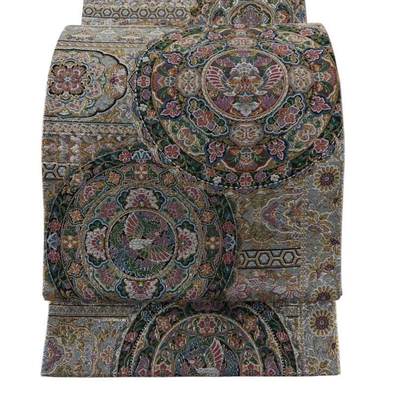 【袋帯】 灰色系 灰緑 秀品 A 帯丈426cm~435cm 7990-9980 美品 二万以下
