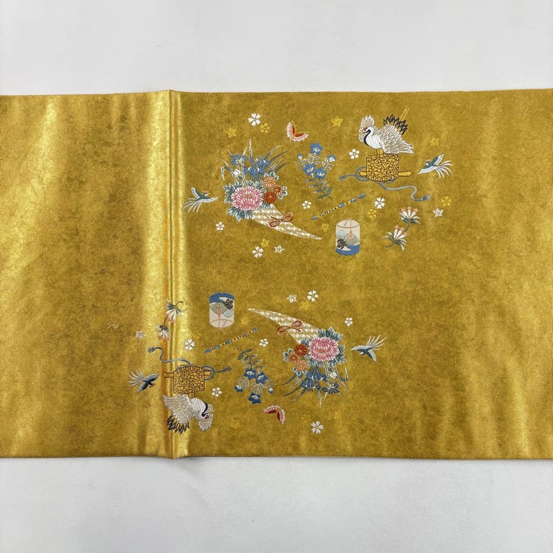 昭和23年に創業した西陣の老舗、「長嶋成織物」の作品です。 おめでたい席に相応しい意匠の袋帯でございます。 格式高いお席にもお使いいただけますので、お見逃しのないようお願いいたします。 リユース品としては目立った染み傷なく、状態の良いお品でございます。 ※なお、厳しく商品の状態確認を行っておりますが、記載の汚れ以外にも見落とし箇所がある可能性がある旨ご了承いただけますと幸いです。 沢山の商品の中からご覧いただき誠にありがとうございます。