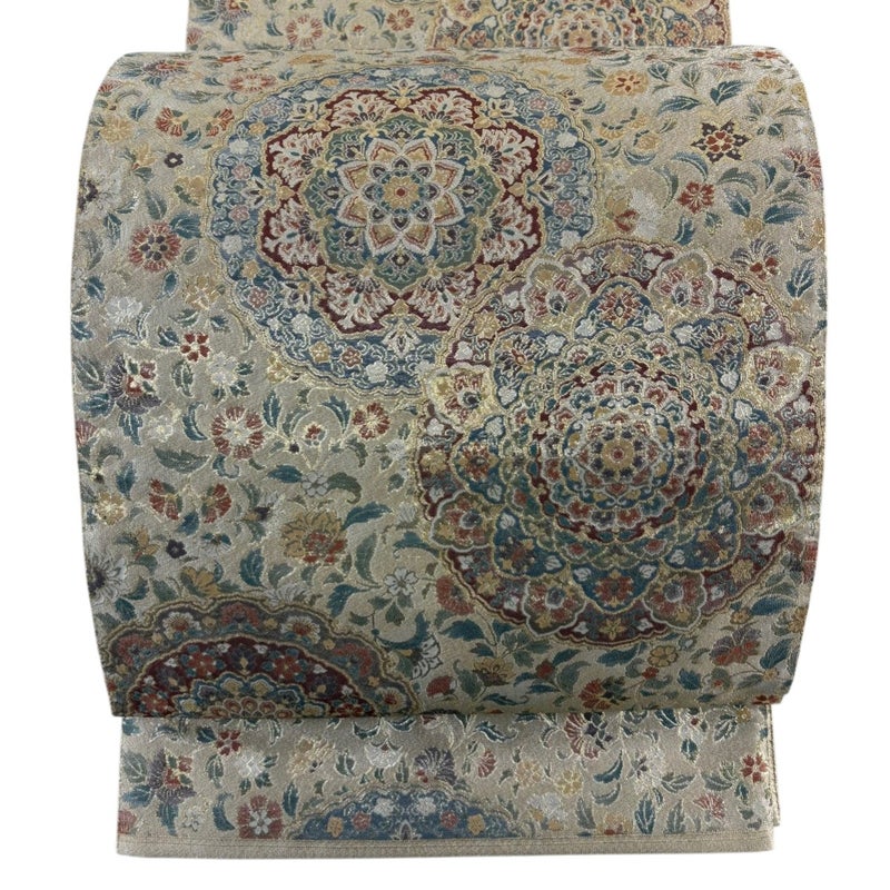 【袋帯】 白系 ベージュ 秀品 A 帯丈436cm以上 7990-9980 美品 二万以下