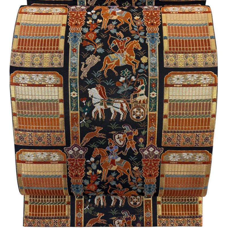 【袋帯】 黒系 黒 秀品 A 帯丈436cm以上 7990-9980 美品 二万以下