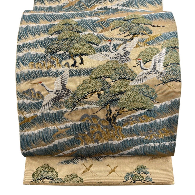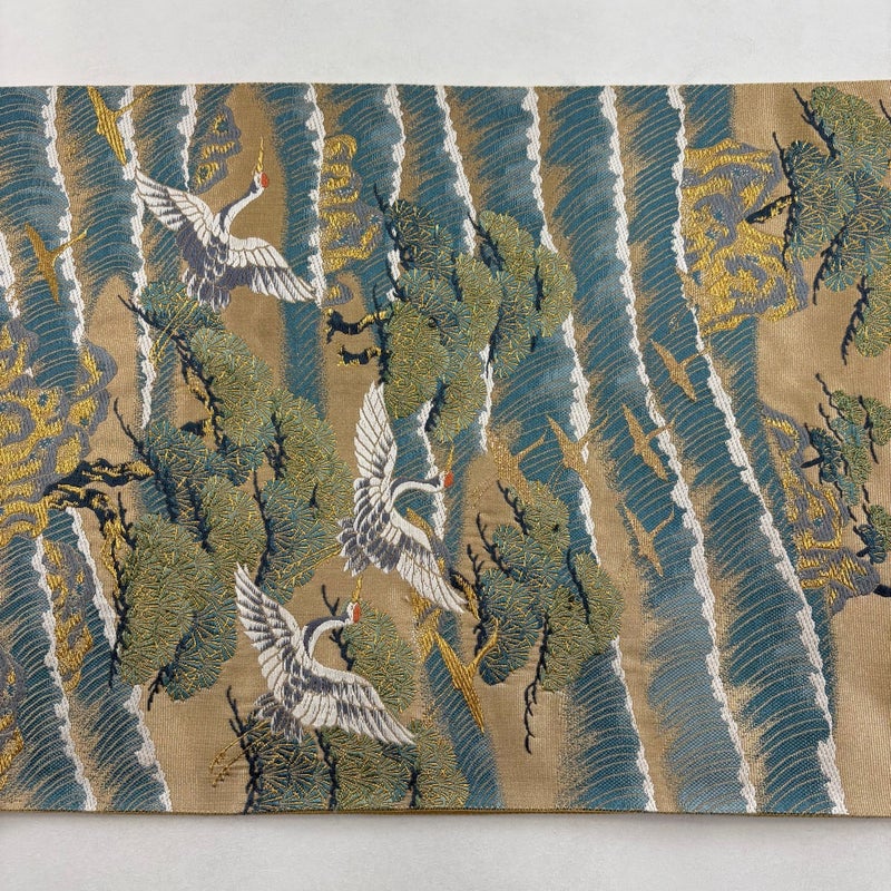おめでたい席に相応しい意匠の袋帯でございます。 格式高いお席にもお使いいただけますので、お見逃しのないようお願いいたします。 帯芯が入っておりません。 締め跡がございます。 リユース品としては目立った染み傷なく、状態の良いお品でございます。 ※なお、厳しく商品の状態確認を行っておりますが、記載の汚れ以外にも見落とし箇所がある可能性がある旨ご了承いただけますと幸いです。 沢山の商品の中からご覧いただき誠にありがとうございます。