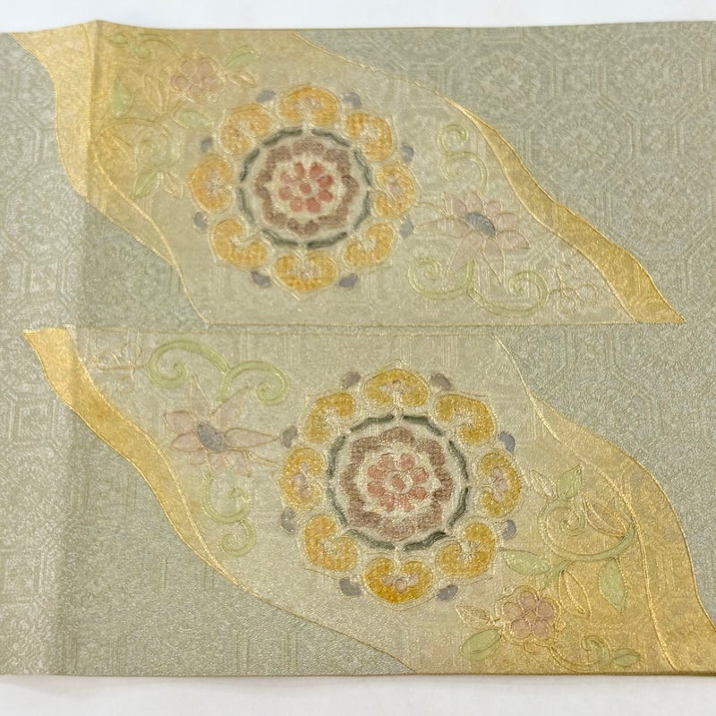 【袋帯】 灰色系 灰緑 秀品 A 帯丈426cm~435cm 7990-9980 美品 二万以下
