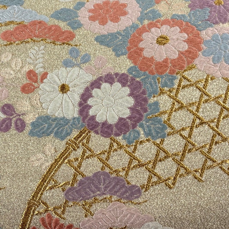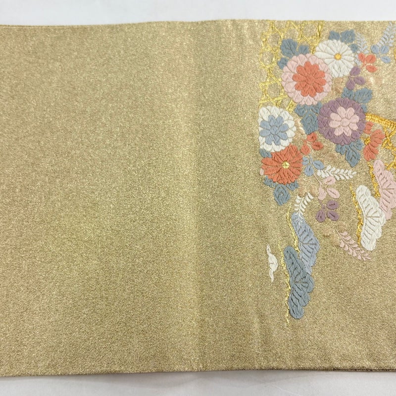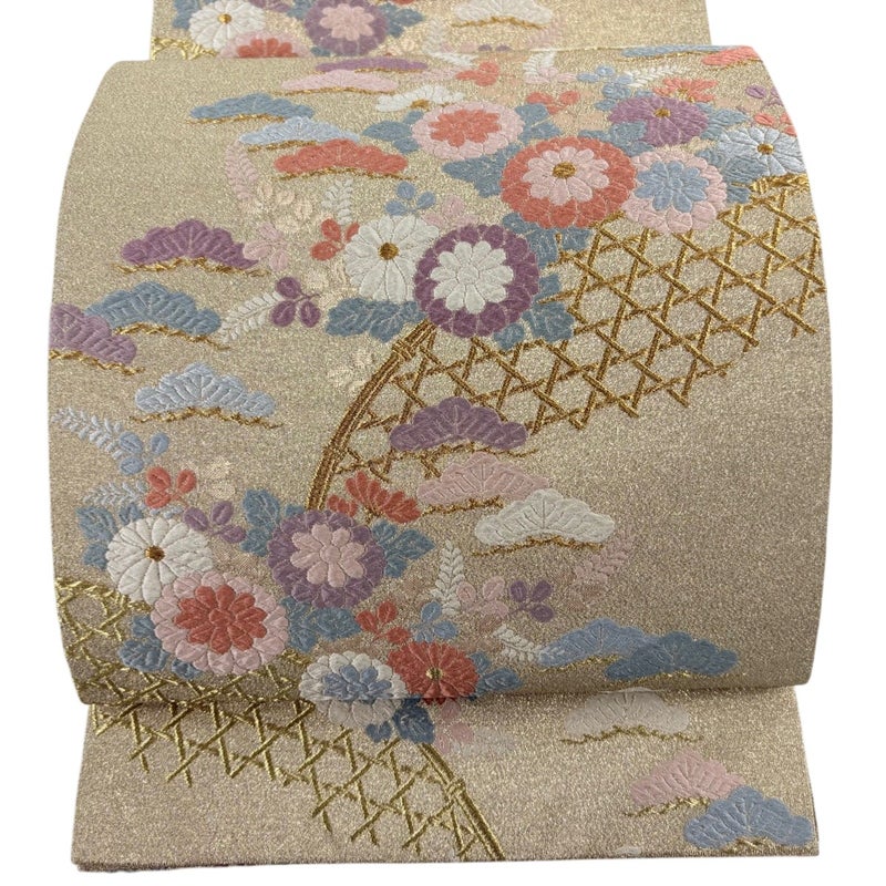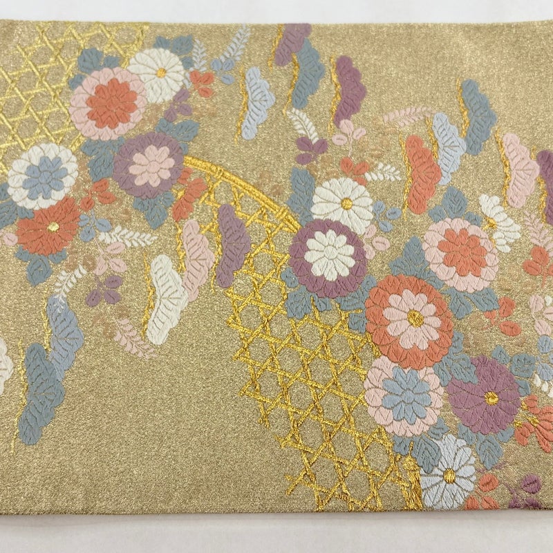 セミフォーマルでお使いいただける袋帯でございます。 見る人に重たい印象を感じさせない女性ならではの、気品豊かな一品です。 リユース品としては目立った染み傷なく、状態の良いお品でございます。 ※なお、厳しく商品の状態確認を行っておりますが、記載の汚れ以外にも見落とし箇所がある可能性がある旨ご了承いただけますと幸いです。 沢山の商品の中からご覧いただき誠にありがとうございます。
