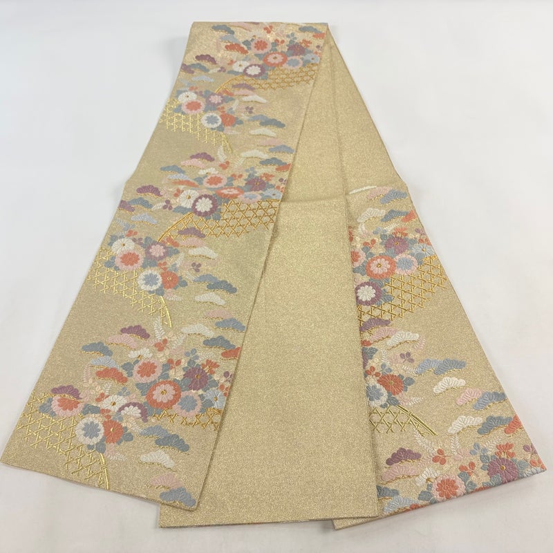 【袋帯】 白系 ベージュ 秀品 A 帯丈436cm以上 7990-9980 美品 二万以下