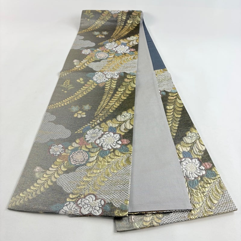 【袋帯】 灰色系 灰茶 秀品 A 帯丈436cm以上 7990-9980 美品 二万以下