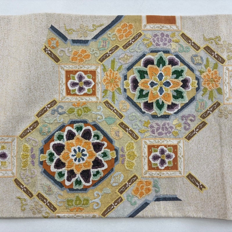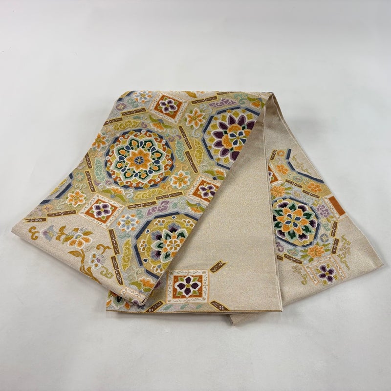 【袋帯】 白系 ベージュ 秀品 A 帯丈401cm~425cm 7990-9980 美品 二万以下