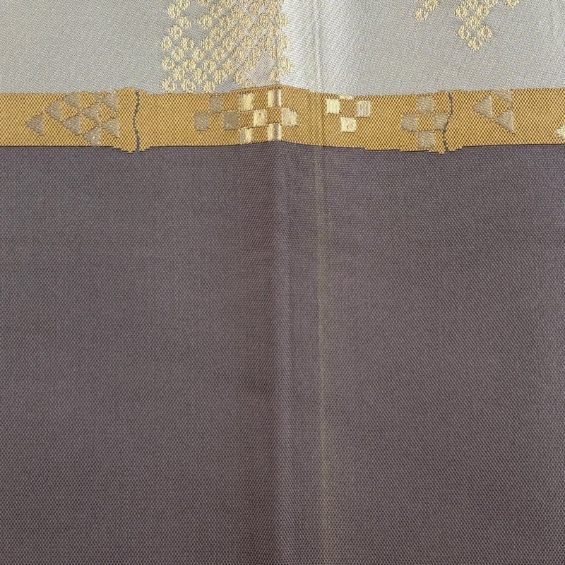 セミフォーマルでお使いいただける袋帯でございます。 見る人に重たい印象を感じさせない女性ならではの、気品豊かな一品です。 締め跡がございます。 表地所々にヤケ、柄止まり付近に薄いシミ、中無地締め跡沿いに薄汚れがございます。 リユース品としては良い状態で、まだまだご活用頂けると思われます。 ※なお、厳しく商品の状態確認を行っておりますが、記載の汚れ以外にも見落とし箇所がある可能性がある旨ご了承いただけますと幸いです。 沢山の商品の中からご覧いただき誠にありがとうございます。