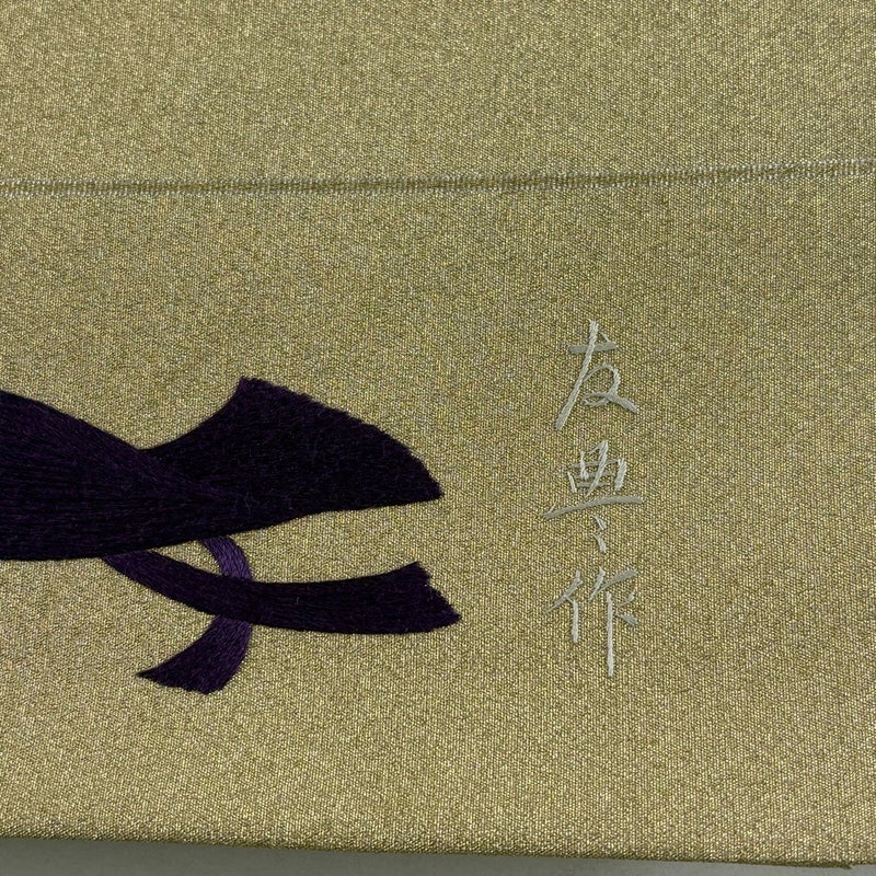 セミフォーマルでお使いいただける袋帯でございます。 見る人に重たい印象を感じさせない女性ならではの、気品豊かな一品です。 締め跡がございます。 表地所々にシワ、前柄に柄移り、お太鼓垂先間に大きなシミがございます。 裏地所々にシワがございます。 ご購入の際はその点ご留意ください。 ※なお、厳しく商品の状態確認を行っておりますが、記載の汚れ以外にも見落とし箇所がある可能性がある旨ご了承いただけますと幸いです。 沢山の商品の中からご覧いただき誠にありがとうございます。 【PR2】