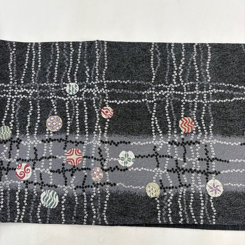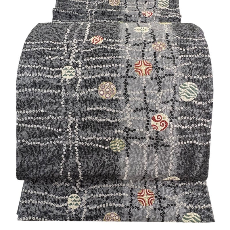 【袋帯】 灰色系 黒灰 秀品 A 帯丈426cm~435cm 7990-9980 美品 二万以下
