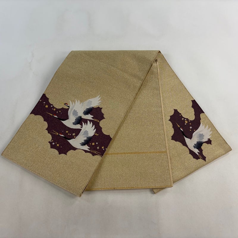 おめでたい席に相応しい意匠の袋帯でございます。 格式高いお席にもお使いいただけますので、お見逃しのないようお願いいたします。 締め跡がございます。 垂先と垂先付近にシミ、締め跡沿いに薄汚れがございます。 裏地の垂先付近にシミがございます。 リユース品としては良い状態で、まだまだご活用頂けると思われます。 ※なお、厳しく商品の状態確認を行っておりますが、記載の汚れ以外にも見落とし箇所がある可能性がある旨ご了承いただけますと幸いです。 沢山の商品の中からご覧いただき誠にありがとうございます。