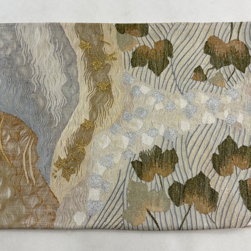 セミフォーマルでお使いいただける袋帯でございます。 見る人に重たい印象を感じさせない女性ならではの、気品豊かな一品です。 締め跡がございます。 お太鼓付近にシミがございます。 リユース品としては目立った染み傷なく、状態の良いお品でございます。 ※なお、厳しく商品の状態確認を行っておりますが、記載の汚れ以外にも見落とし箇所がある可能性がある旨ご了承いただけますと幸いです。 沢山の商品の中からご覧いただき誠にありがとうございます。