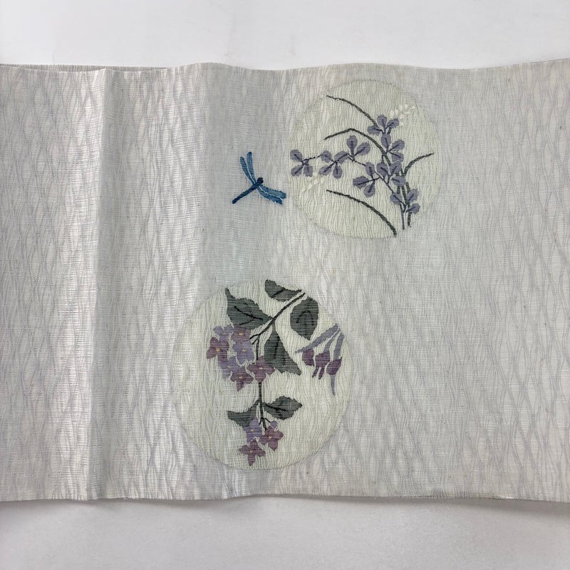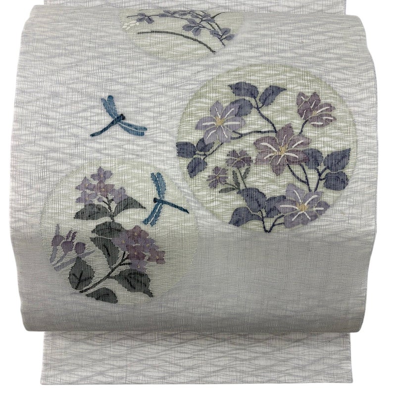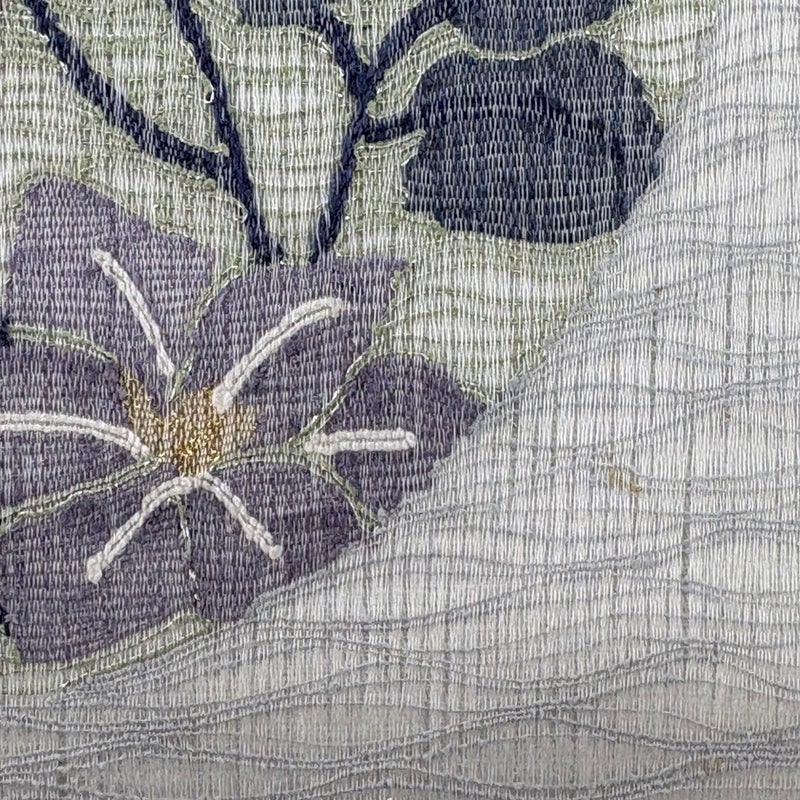 夏帯でございます。 セミフォーマルでお使いいただける袋帯でございます。 見る人に重たい印象を感じさせない女性ならではの、気品豊かな一品です。 表地全体に薄ヤケ、垂先とお太鼓などに小さなシミがございます。 リユース品としては目立った染み傷なく、状態の良いお品でございます。 ※なお、厳しく商品の状態確認を行っておりますが、記載の汚れ以外にも見落とし箇所がある可能性がある旨ご了承いただけますと幸いです。 沢山の商品の中からご覧いただき誠にありがとうございます。
