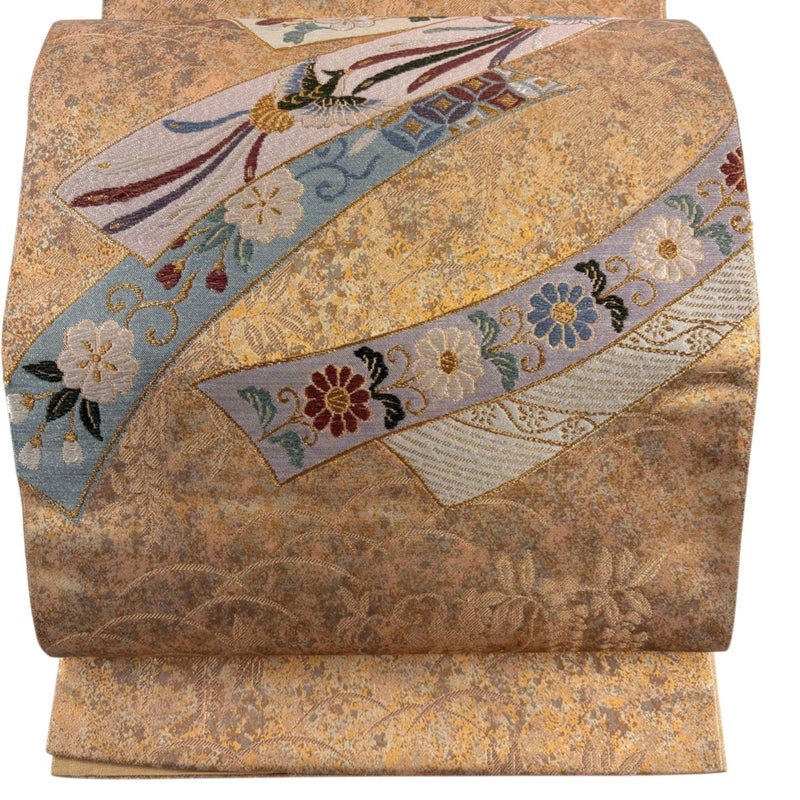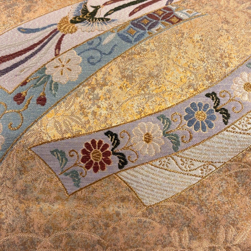 セミフォーマルでお使いいただける袋帯でございます。 見る人に重たい印象を感じさせない女性ならではの、気品豊かな一品です。 締め跡がございます。 リユース品としては目立った染み傷なく、状態の良いお品でございます。 ※なお、厳しく商品の状態確認を行っておりますが、記載の汚れ以外にも見落とし箇所がある可能性がある旨ご了承いただけますと幸いです。 沢山の商品の中からご覧いただき誠にありがとうございます。