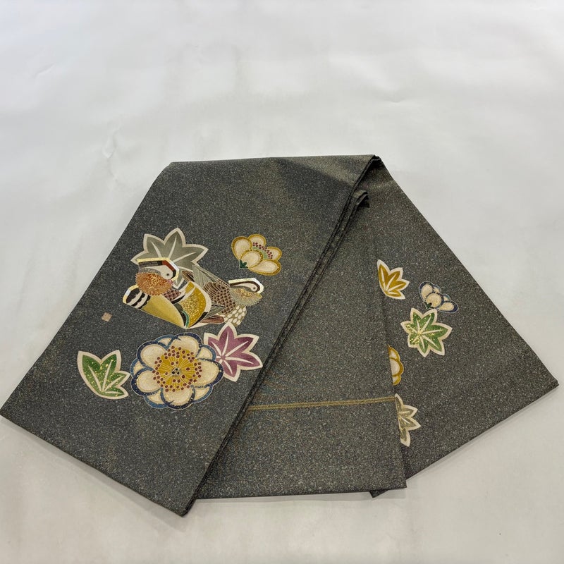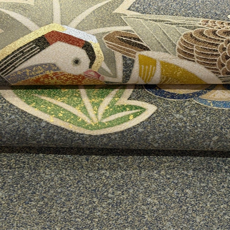 加賀友禅の人間国宝に認定された羽田登喜男の作品でございます。 おめでたい席に相応しい意匠の袋帯でございます。 格式高いお席にもお使いいただけますので、お見逃しのないようお願いいたします。 前柄に小さな金彩の変色がございます。 リユース品としては目立った染み傷なく、状態の良いお品でございます。 ※なお、厳しく商品の状態確認を行っておりますが、記載の汚れ以外にも見落とし箇所がある可能性がある旨ご了承いただけますと幸いです。 沢山の商品の中からご覧いただき誠にありがとうございます。