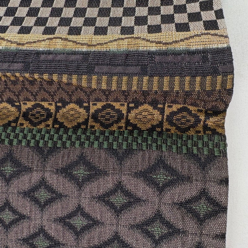 普段使いでお使いいただける袋帯でございます。 カジュアルな装いに合わせてお使いください。 締め跡がございます。 表地所々に生地ヨレがございます。 リユース品としては目立った染み傷なく、状態の良いお品でございます。 ※なお、厳しく商品の状態確認を行っておりますが、記載の汚れ以外にも見落とし箇所がある可能性がある旨ご了承いただけますと幸いです。 沢山の商品の中からご覧いただき誠にありがとうございます。