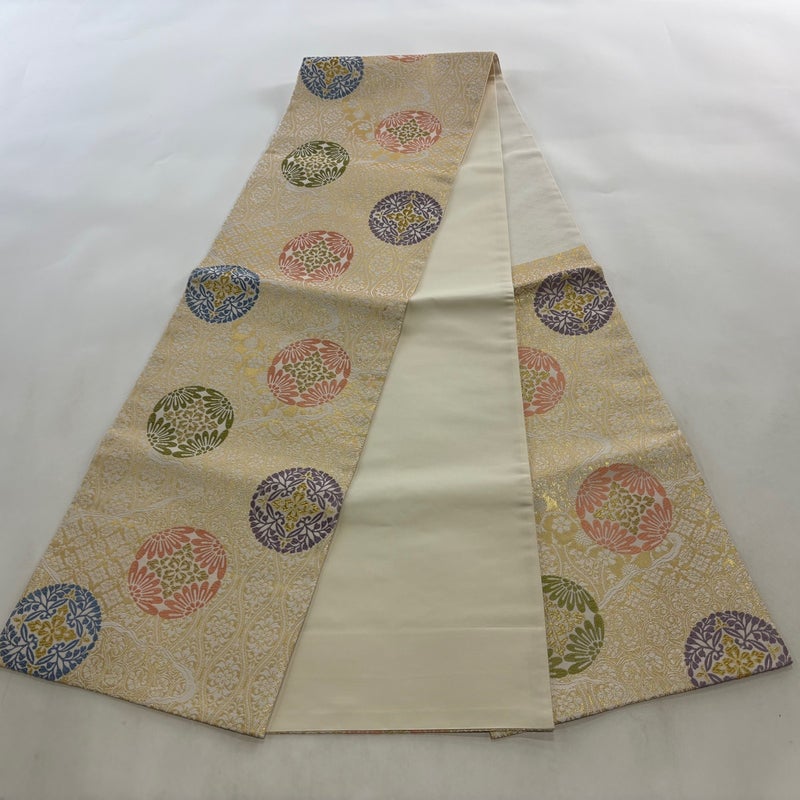 【袋帯】 白系 クリーム 名品 A 帯丈436cm以上 9990-29990 美品 二万以下