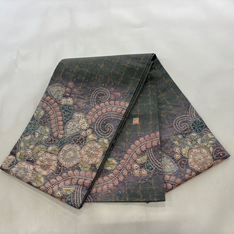 セミフォーマルでお使いいただける袋帯でございます。 見る人に重たい印象を感じさせない女性ならではの、気品豊かな一品です。 締め跡がございます。 リユース品としては目立った染み傷なく、状態の良いお品でございます。 ※なお、厳しく商品の状態確認を行っておりますが、記載の汚れ以外にも見落とし箇所がある可能性がある旨ご了承いただけますと幸いです。 沢山の商品の中からご覧いただき誠にありがとうございます。