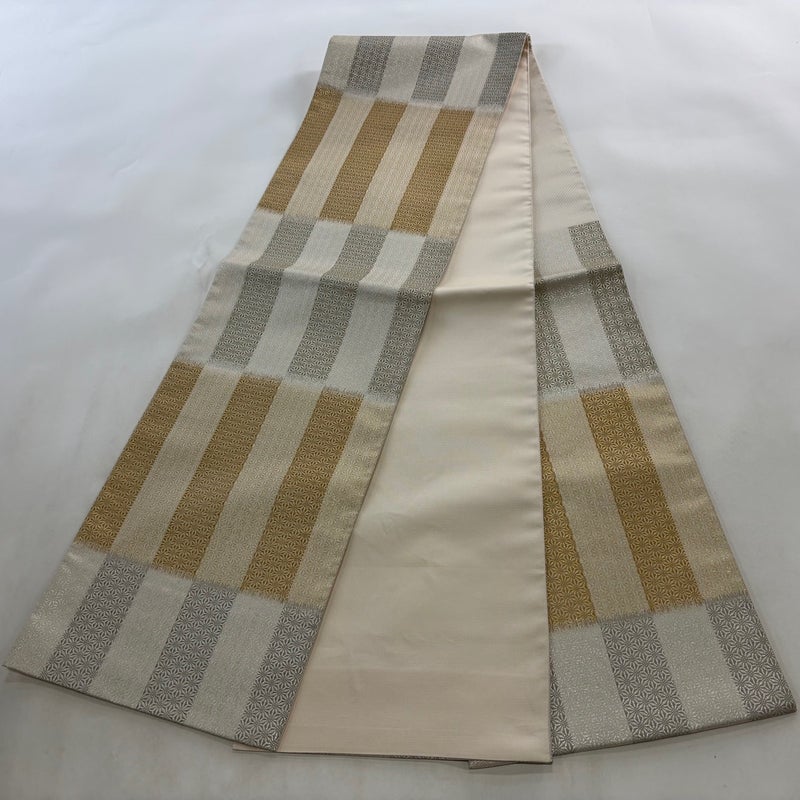 【袋帯】 白系 クリーム 名品 A 帯丈436cm以上 9990-29990 美品 二万以下