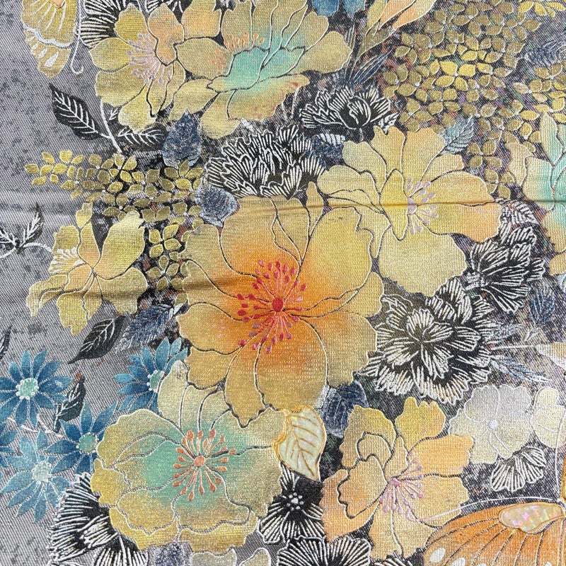 セミフォーマルでお使いいただける袋帯でございます。 見る人に重たい印象を感じさせない女性ならではの、気品豊かな一品です。 締め跡がございます。 お太鼓付近など所々にシワ、表地所々に小さな金銀彩の剥がれがございます。 リユース品としては良い状態で、まだまだご活用頂けると思われます。 ※なお、厳しく商品の状態確認を行っておりますが、記載の汚れ以外にも見落とし箇所がある可能性がある旨ご了承いただけますと幸いです。 沢山の商品の中からご覧いただき誠にありがとうございます。