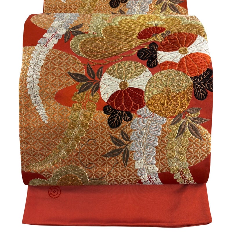 【袋帯】 赤系 赤茶 名品 A 帯丈436cm以上 9990-29990 美品 二万以下