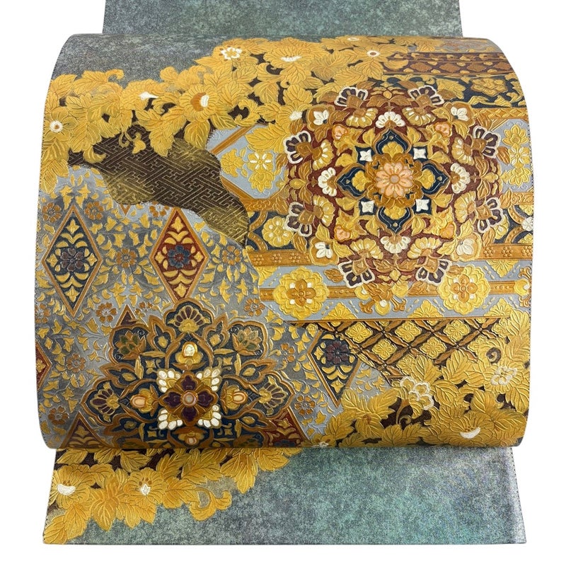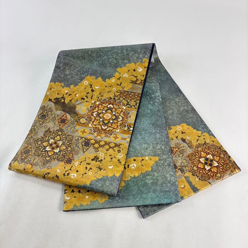 【袋帯】 灰色系 灰緑 名品 A 帯丈436cm以上 9990-29990 美品 二万以下