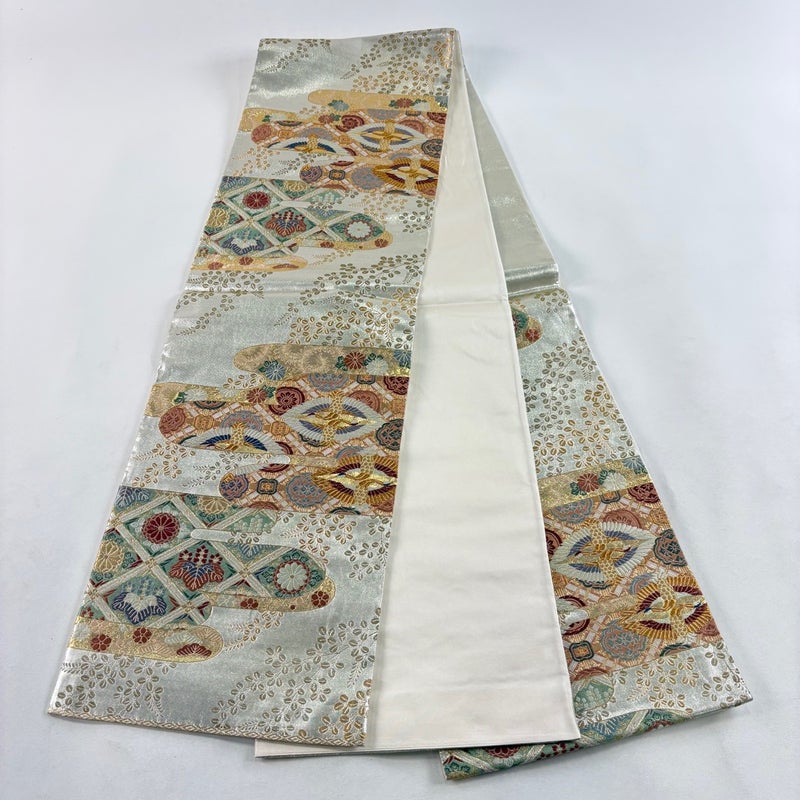 【袋帯】 金・銀系 銀色 秀品 A 帯丈436cm以上 7990-9980 美品 二万以下