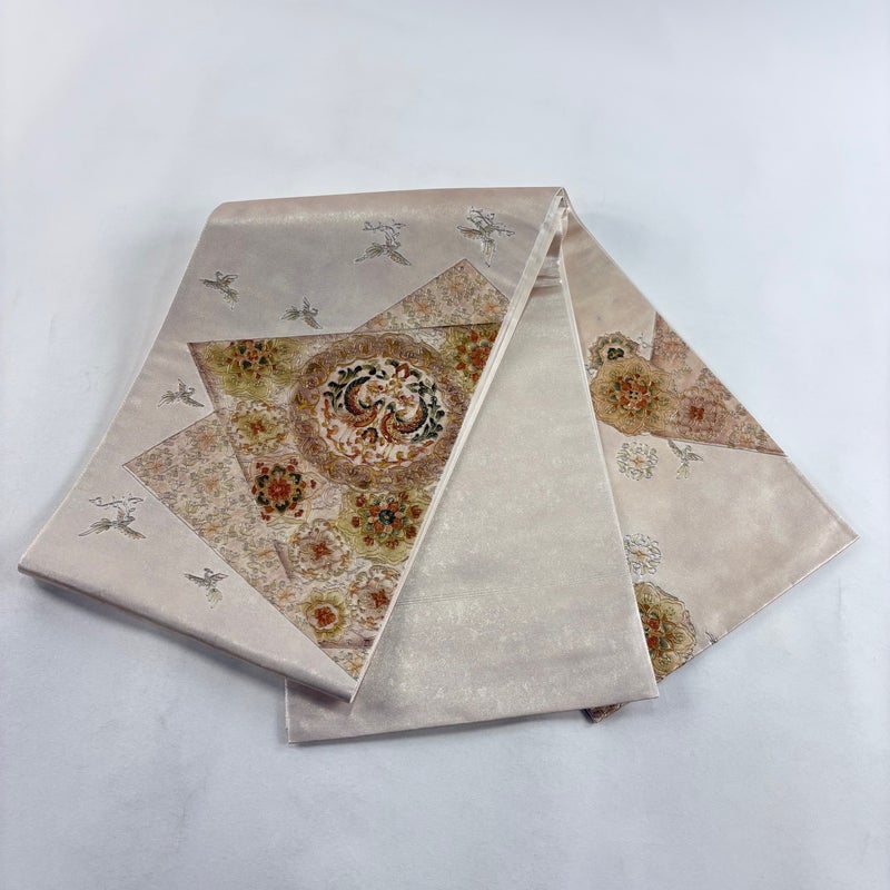 【袋帯】 赤系 ピンクベージュ 秀品 A 帯丈426cm~435cm 7990-9980 美品 二万以下