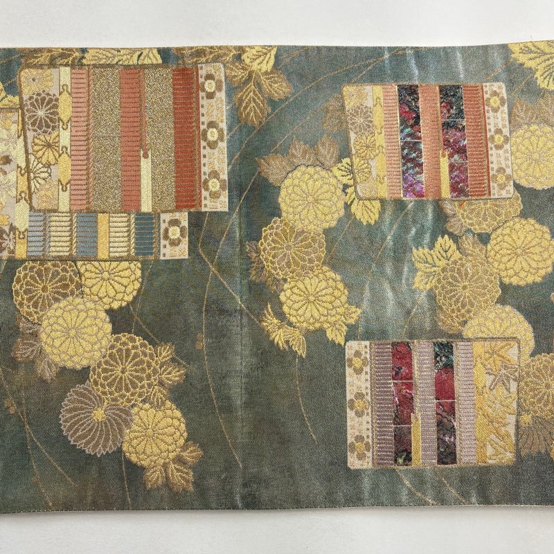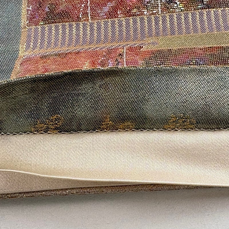 【袋帯】 灰色系 灰緑 秀品 A 帯丈436cm以上 7990-9980 美品 二万以下