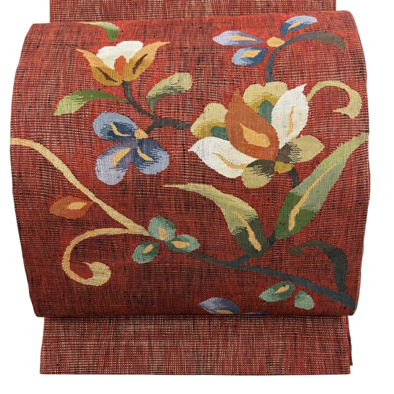 【袋帯】 赤系 えんじ色 秀品 A 帯丈436cm以上 9990-29990 美品 二万以下