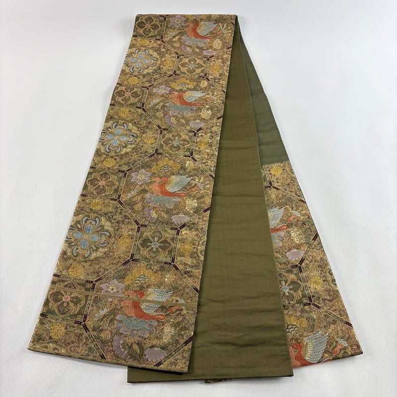 【袋帯】 茶系 茶緑色 秀品 A 帯丈401cm~425cm 7990-9980 美品 二万以下