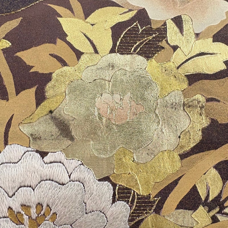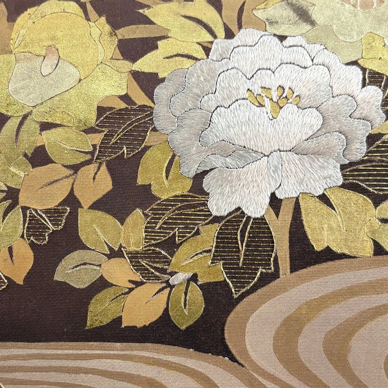 セミフォーマルでお使いいただける袋帯でございます。 見る人に重たい印象を感じさせない女性ならではの、気品豊かな一品です。 締め跡がございます。 表地所々に薄いシミ、お太鼓部分など表地所々に金彩の剥がれがございます。 裏地に薄いシミがございます。 リユース品としては良い状態で、まだまだご活用頂けると思われます。 ※なお、厳しく商品の状態確認を行っておりますが、記載の汚れ以外にも見落とし箇所がある可能性がある旨ご了承いただけますと幸いです。 沢山の商品の中からご覧いただき誠にありがとうございます。