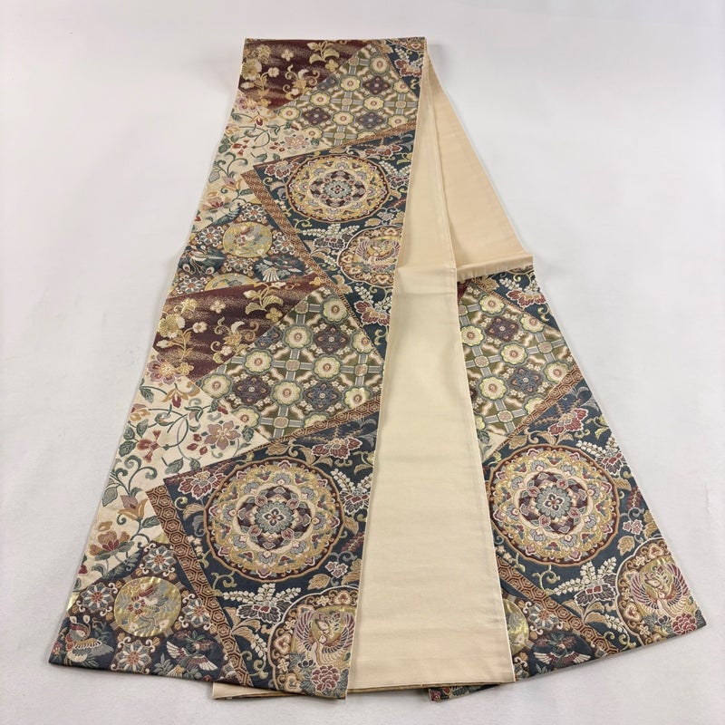 【袋帯】 灰色系 青灰色 秀品 A 帯丈426cm~435cm 7990-9980 美品 二万以下