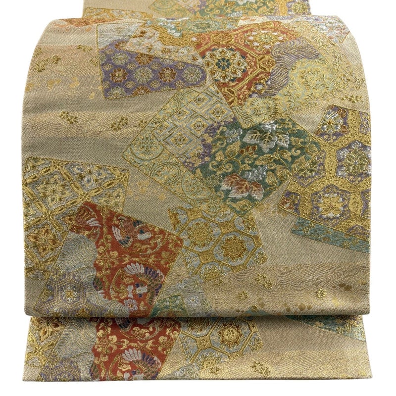 【袋帯】 白系 ベージュ 秀品 A 帯丈436cm以上 7990-9980 美品 二万以下