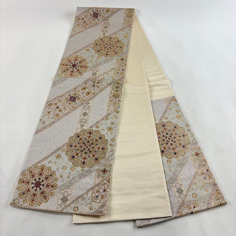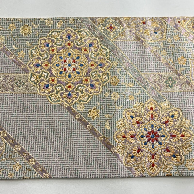 【袋帯】 灰色系 灰白 秀品 A 帯丈426cm~435cm 7990-9980 美品 二万以下