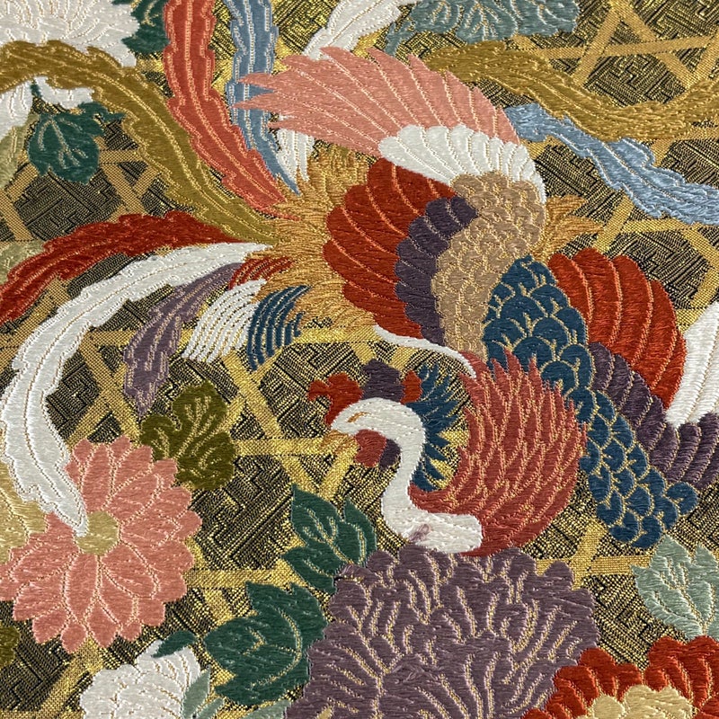 おめでたい席に相応しい意匠の袋帯でございます。 格式高いお席にもお使いいただけますので、お見逃しのないようお願いいたします。 締め跡がございます。 前柄お太鼓間に生地のヨレ、お太鼓に糸ゆるみがございます。表地所々に糸ゆるみがございます。 リユース品としては目立った染み傷なく、状態の良いお品でございます。 ※なお、厳しく商品の状態確認を行っておりますが、記載の汚れ以外にも見落とし箇所がある可能性がある旨ご了承いただけますと幸いです。 沢山の商品の中からご覧いただき誠にありがとうございます。