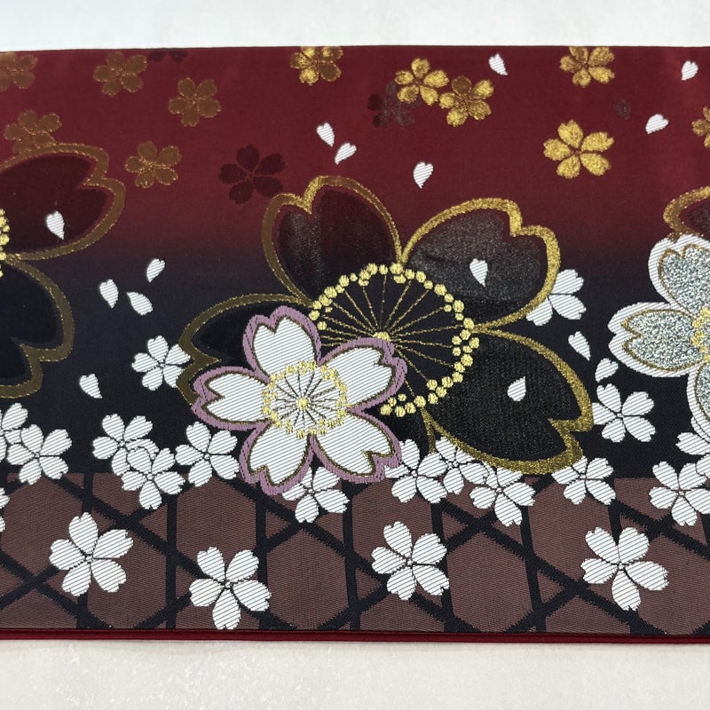 【袋帯】 赤系 えんじ色 秀品 A 帯丈426cm~435cm 7990-9980 美品 二万以下