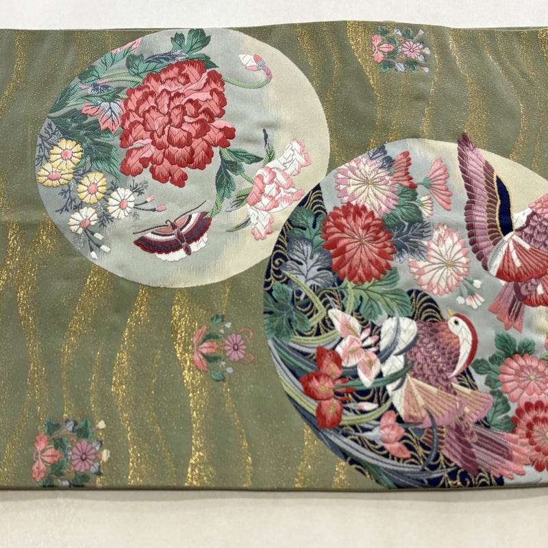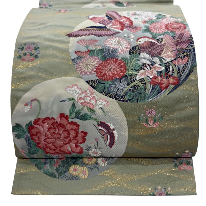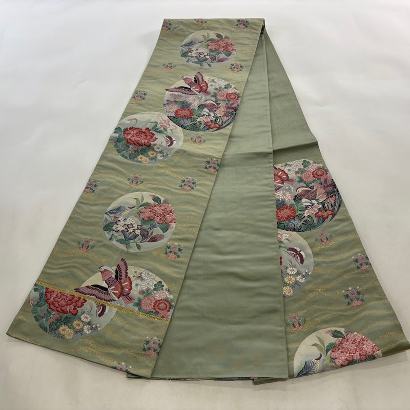 【袋帯】 灰色系 灰緑 秀品 B 帯丈426cm~435cm 4000-7980 二万以下