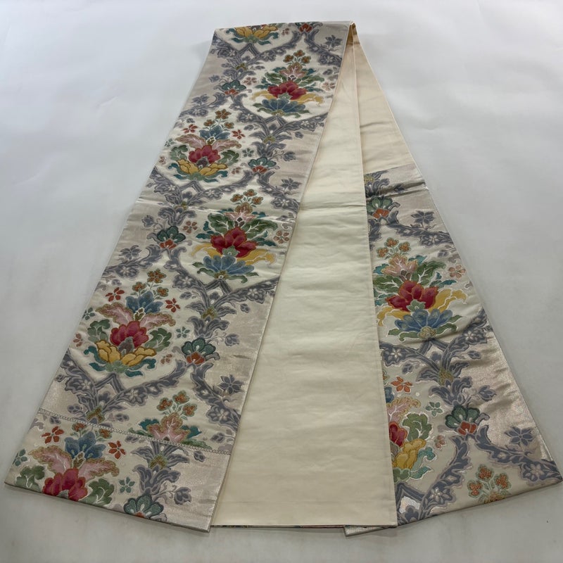 【着物ランク】秀品 【素材】正絹 【帯丈】約436cm 【帯幅】約31cm 【帯仕立て】仕立て上がり 【状態ランク】ランクB 【帯着用シーン】セミフォーマル(色無地・付下げ)