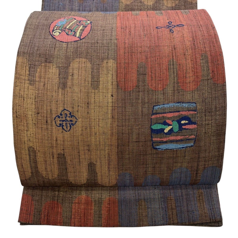 【袋帯】 茶系 茶色 秀品 A 帯丈436cm以上 7990-9980 美品 二万以下