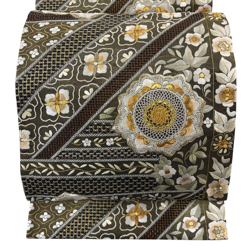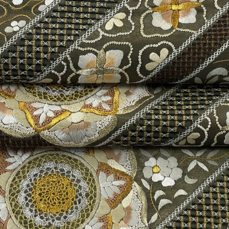 【袋帯】 灰色系 灰緑 逸品 A 帯丈426cm~435cm 30000- 美品 五万以上