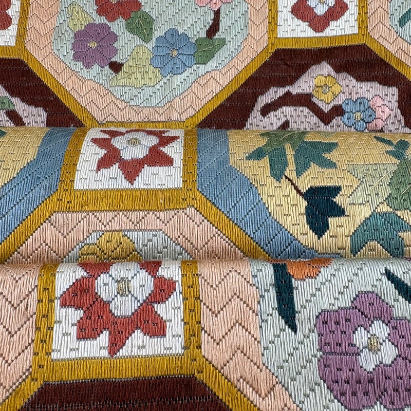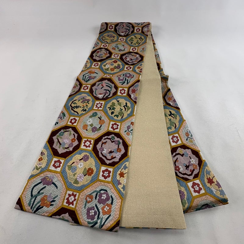 普段使いでお使いいただける袋帯でございます。 カジュアルな装いに合わせてお使いください。 締め跡がございます。 前柄お太鼓間に薄いシミ、表地所々に刺繍糸のゆるみ、表地所々に毛羽立ちがございます。 リユース品としては良い状態で、まだまだご活用頂けると思われます。 ※なお、厳しく商品の状態確認を行っておりますが、記載の汚れ以外にも見落とし箇所がある可能性がある旨ご了承いただけますと幸いです。 沢山の商品の中からご覧いただき誠にありがとうございます。