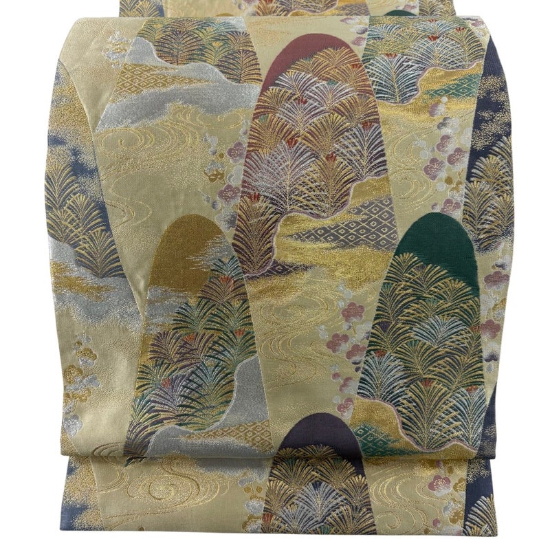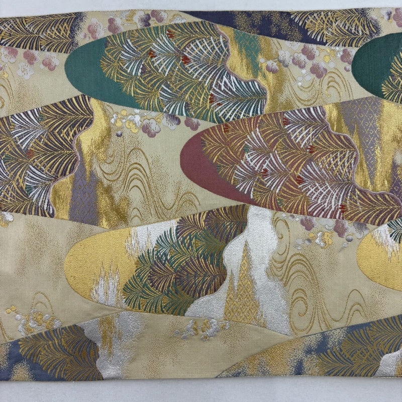 おめでたい席に相応しい意匠の袋帯でございます。 格式高いお席にもお使いいただけますので、お見逃しのないようお願いいたします。 ※締め跡がお太鼓を含む帯全体にございます。 ※締め跡がお太鼓を含む裏地全体にございます。 リユース品としては良い状態で、まだまだご活用頂けると思われます。 ※なお、厳しく商品の状態確認を行っておりますが、記載の汚れ以外にも見落とし箇所がある可能性がある旨ご了承いただけますと幸いです。 沢山の商品の中からご覧いただき誠にありがとうございます。