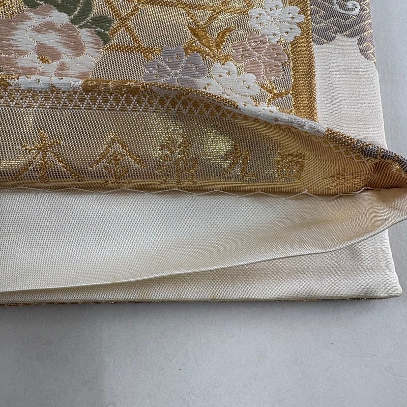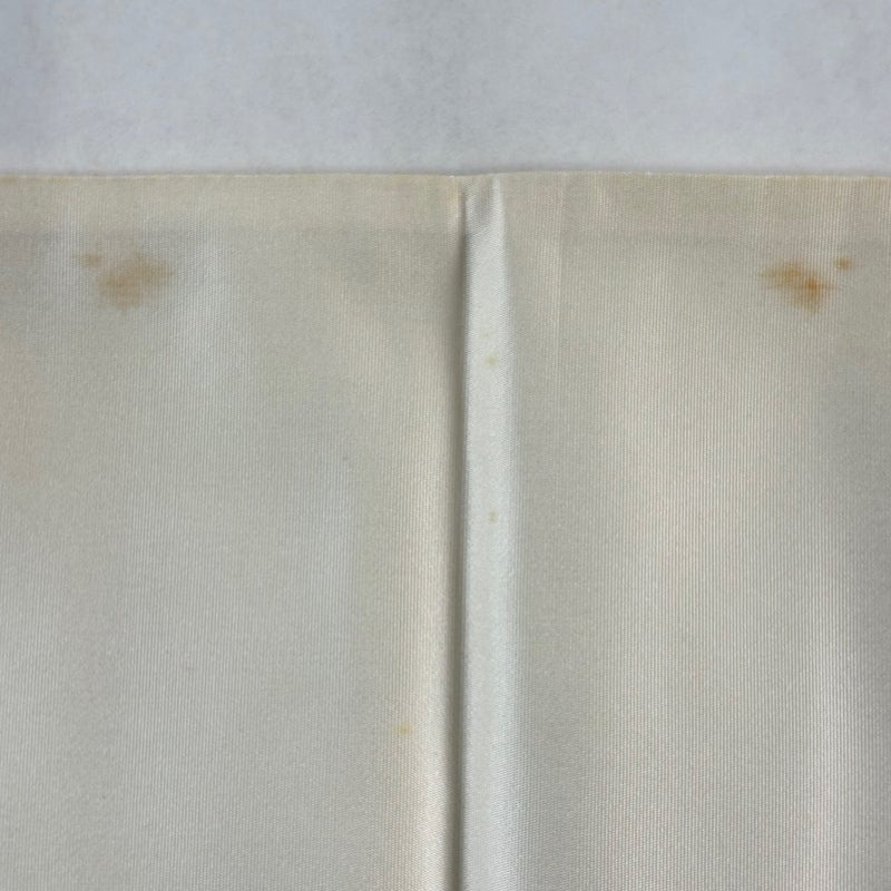セミフォーマルでお使いいただける袋帯でございます。 見る人に重たい印象を感じさせない女性ならではの、気品豊かな一品です。 締め跡がございます。 中無地にシミがございます。 裏地所々にシミがございます。 リユース品としては良い状態で、まだまだご活用頂けると思われます。 ※なお、厳しく商品の状態確認を行っておりますが、記載の汚れ以外にも見落とし箇所がある可能性がある旨ご了承いただけますと幸いです。 沢山の商品の中からご覧いただき誠にありがとうございます。