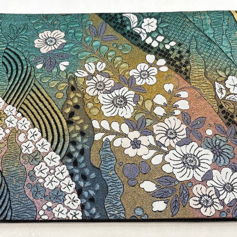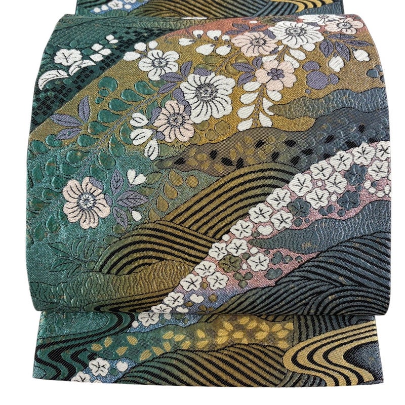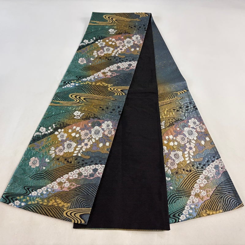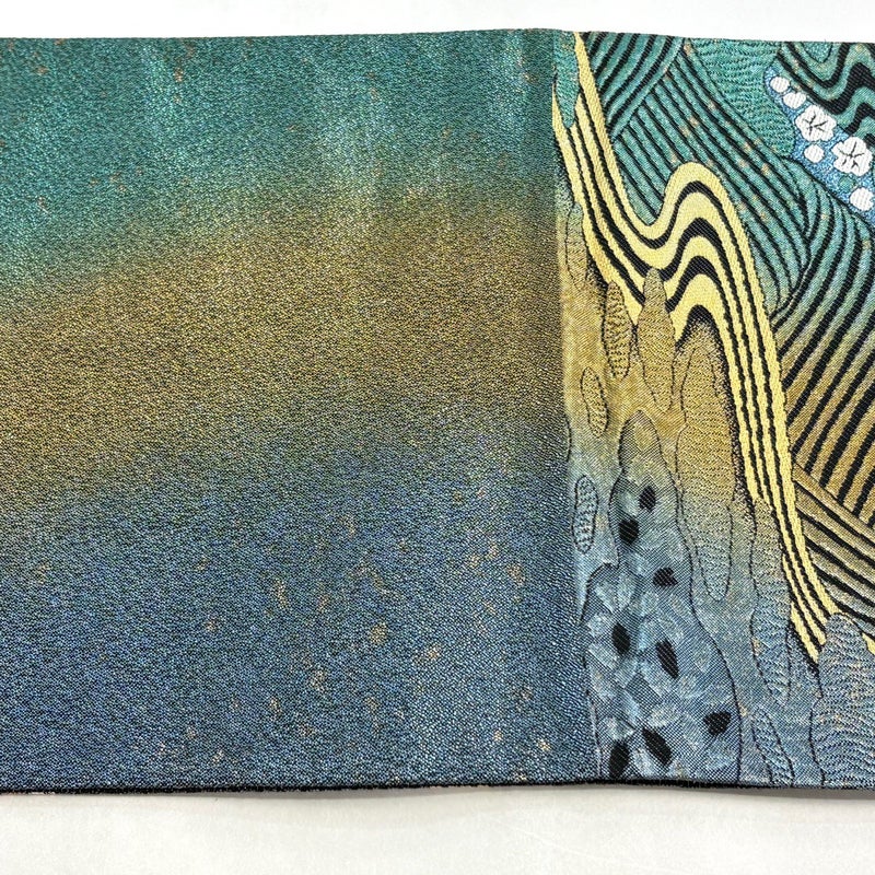 【袋帯】 青系 青緑 秀品 A 帯丈426cm~435cm 7990-9980 美品 二万以下